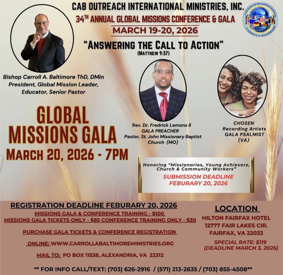 20th - ANNUAL CAB MISSION BANQUET FAIRLAKES VA 7PM